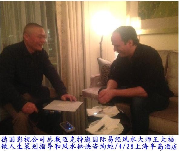 2013年,德國(guó)影視公司總裁邁克先生到上海拍攝大片期間,慕名特邀王大福先生做人生策劃指導(dǎo)與家居風(fēng)水及公司風(fēng)水布局天機(jī)咨詢服務(wù)。