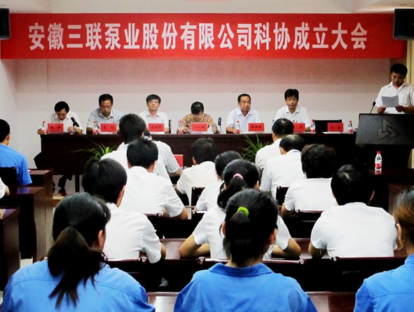 2012年7月25日,公司隆重召開了安徽三聯(lián)泵業(yè)股份有限公司科學技術(shù)協(xié)會成立大會(以下簡稱企業(yè)科協(xié)),會議由人力資源總監(jiān)高敏主持。出席此次大會的有馬鞍山市企事業(yè)科協(xié)工作部部長高耀華、和縣副縣長王竹梅、和縣科協(xié)主席駱奉根、公司常務(wù)副總汪生,總工程師夏巍等,公司技術(shù)、品管等部門共50多人參加此次大會。