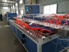 PVC竹炭集成墻板設(shè)備采用錐形雙螺桿擠出機,中空板模具,真空定型臺、牽引機、切割機及推料架組成。輔機機組采用可編程電腦控制或國產(chǎn)名牌控制系統(tǒng),整機控制可靠穩(wěn)定。