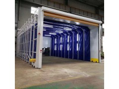 伸縮移動式噴漆房是我公司的主導(dǎo)產(chǎn)品,它適用于各種大中型設(shè)備及零部件的打磨,噴漆及烘干作業(yè)。展開前室,形成一個封閉或半封閉空間,在伸縮移動式噴漆房中進(jìn)行噴漆或打磨作業(yè),收縮前室后形成一個敞開式空間,方便進(jìn)行工件轉(zhuǎn)運(yùn)輯轉(zhuǎn)工作,降低了工人勞動強(qiáng)度和工作效率。噴漆房整體為框架式結(jié)構(gòu),表面噴塑,框架之間由阻燃PVC布鏈接密封,顏色內(nèi)白外蘭,外形美觀大方,安裝快捷方便,低廉,運(yùn)行平穩(wěn)安全可靠。前室可伸展3-60米不等,寬度可做成2-25米不等,它凈化效率漆霧處理和打磨粉塵處理,提高工人噴漆工作環(huán)境質(zhì)量,深受廣大客戶好評和親睞。