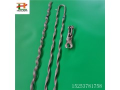 ADSS耐張線夾 預絞式ADSS耐張串 安裝簡單 保質(zhì)保量 中,大張力耐張線夾組成為雙層絞絲結構,耐張內(nèi)絞絲用鍍鋅鋼絲或鋁包鋼絲制成,預絞絲內(nèi)壁粘有一層微粒金剛砂,以增加磨擦力。預絞絲在工廠加工時被預制成四個子束,避免安裝誤差并便于快速安裝。預絞絲的末端朝徑向外側彎曲,以免擠壓損害光纜。耐張外絞絲用鍍鋅鋼絲或鋁包鋼絲制成,預絞絲在工廠加工時被預制成束,并在內(nèi)壁粘有一層牢固的金剛砂,以達到對光纜減少側壓力的條件下增加耐張線夾的握力。 預絞式耐張線夾作用:是將ADSS光纜固定在轉角、耐張、終端桿塔的掛點上,或將OPGW復合光纜固定在承力桿塔的地線支架上。各類耐張金具的破壞荷載就不小于光纜的計算拉斷力值。預絞絲式耐張金具具有應力分布均勻,無應力集中點,有較好的動態(tài)應力承受能力及防腐性能好等優(yōu)點。 組成:內(nèi)絞絲、外絞絲、嵌環(huán)、延長環(huán)、U型掛環(huán)等。 用途:承受全張力、將ADSS光纜連接至終端桿塔、耐張桿塔和光纜接續(xù)桿塔上。 安裝步驟: (1)將外絲安裝標記對準光纜做安裝標記。 (2)將***組內(nèi)絲端頭安裝標記對準光纜后纏繞上光纜。 (3)其它幾組內(nèi)絲與**組同樣操作。 (4)將內(nèi)絲全部安裝完。 (5)將外絲安裝標記對準內(nèi)絲安裝標記 。 (6)先纏繞好一條腿。 (7)再纏繞另一條腿。 (8)將外絲端頭纏繞好。 (9)耐張夾具安裝完畢。